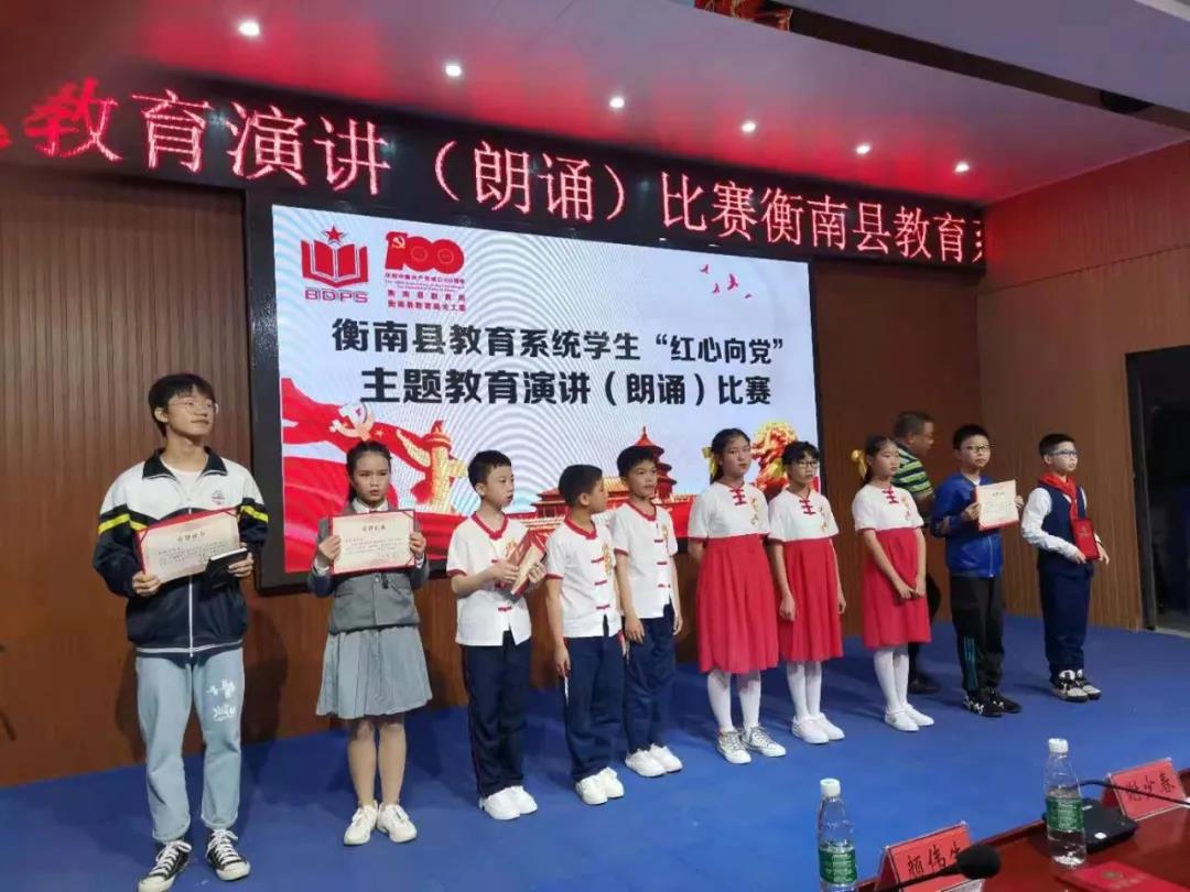大同高中唐美琴同學(xué)在衡南縣教育局及關(guān)工委舉辦的慶祝中國共產(chǎn)黨成立100周年“紅心向黨”主題教育,全縣中小學(xué)演講(朗誦)比賽中,榮獲高中組壹等獎(jiǎng)!蔣芳、王嵐兩位老師榮獲高中組壹等指導(dǎo)獎(jiǎng)!