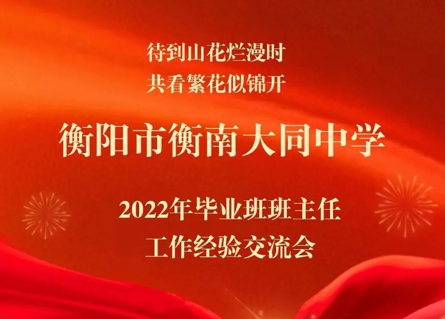 值此建團100周年之際,我們相聚在南岳,召開2022年初、高中畢業(yè)班班主任工作經驗交流會,這是一次成功的大會。與會同仁進行了廣泛交流,統(tǒng)一了思想、達成了共識、加強了合作。此次會議的召開,讓我們更加明確了今后的工作目標與方向。 “待到山花爛漫時,共看繁花似錦開。”在大同中學董事會的全力支持下,全體教職工努力工作,全體大同學子頑強拼搏,我們堅信大同中學的學子們在2022年的高考、中考中定能如愿以償、蟾宮折桂、捷報頻傳!讓我們共同見證大同中學2022年高考、中考新輝煌!