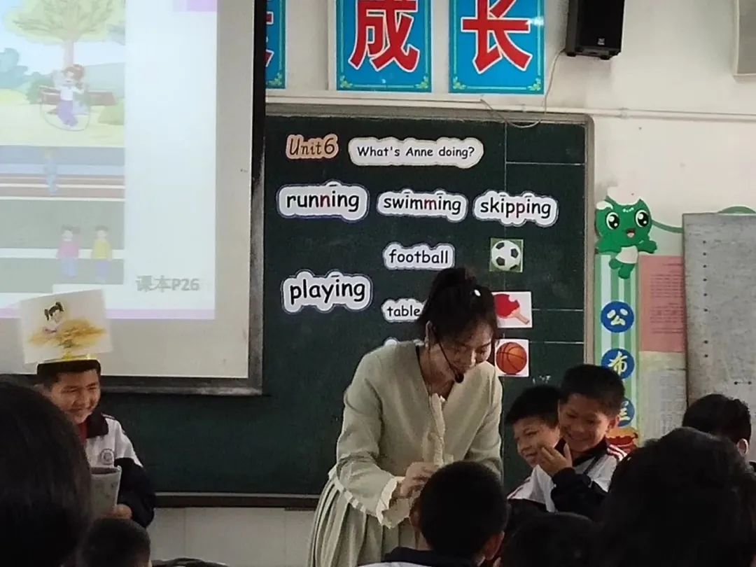 歐老師通過玩顛倒文字游戲、猜中獎號碼等小游戲,吸引同學們的專注力,提高同學們對新課知識的興趣。課堂上她用親和力的聲音,調動了學生們的積極性,使他們在愉快的氛圍中學習了新知識。