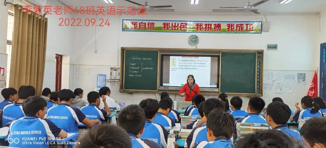 李菊英老師展示課的內(nèi)容為:句子的結(jié)構(gòu)(setence structure)。李老師的課程從simple sentence、compound sentence和complex sentence三個方面展開教學(xué),讓學(xué)生深刻認(rèn)識了句子結(jié)構(gòu),課堂效果佳。