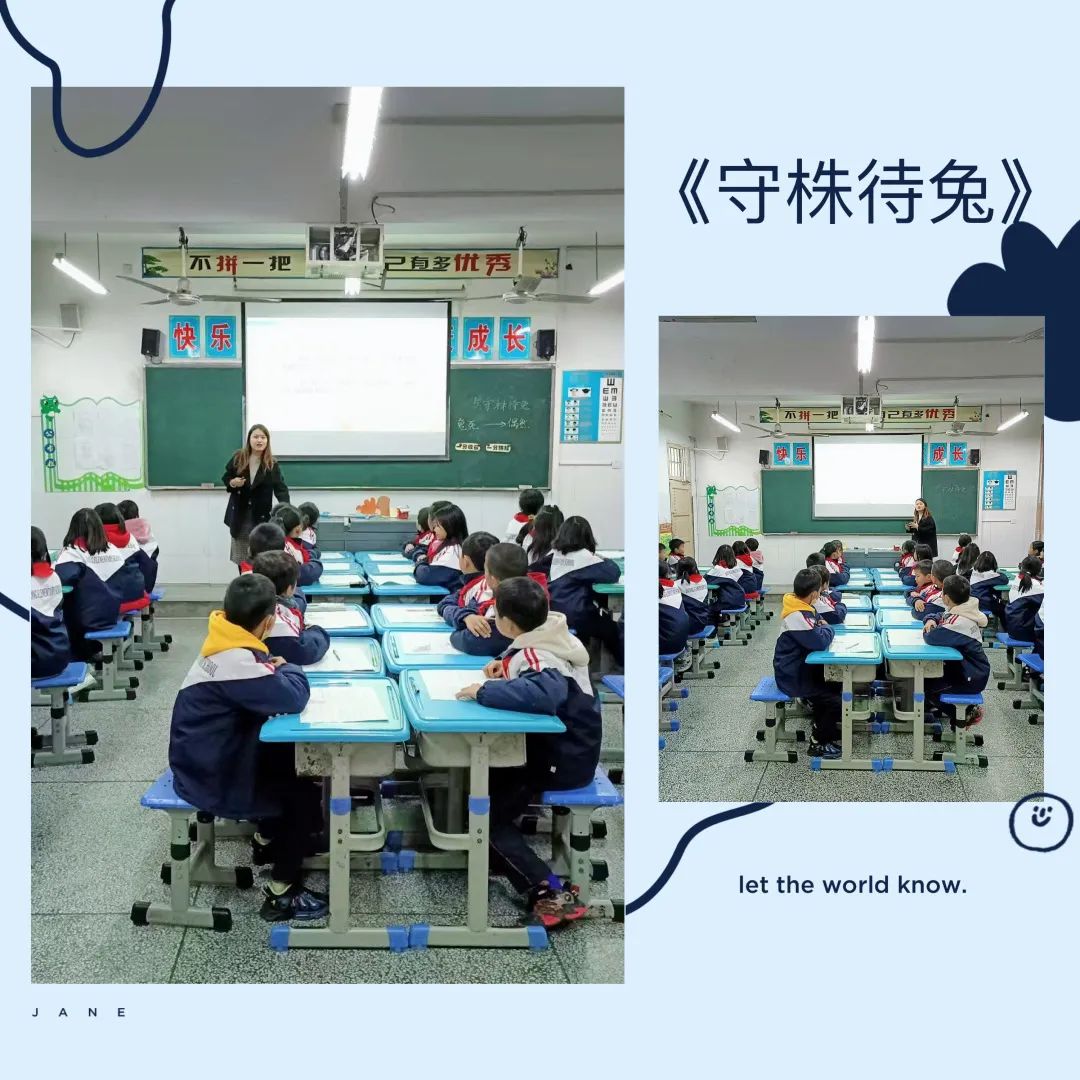 譚穎老師執(zhí)教的文言文課題是《守株待兔》。