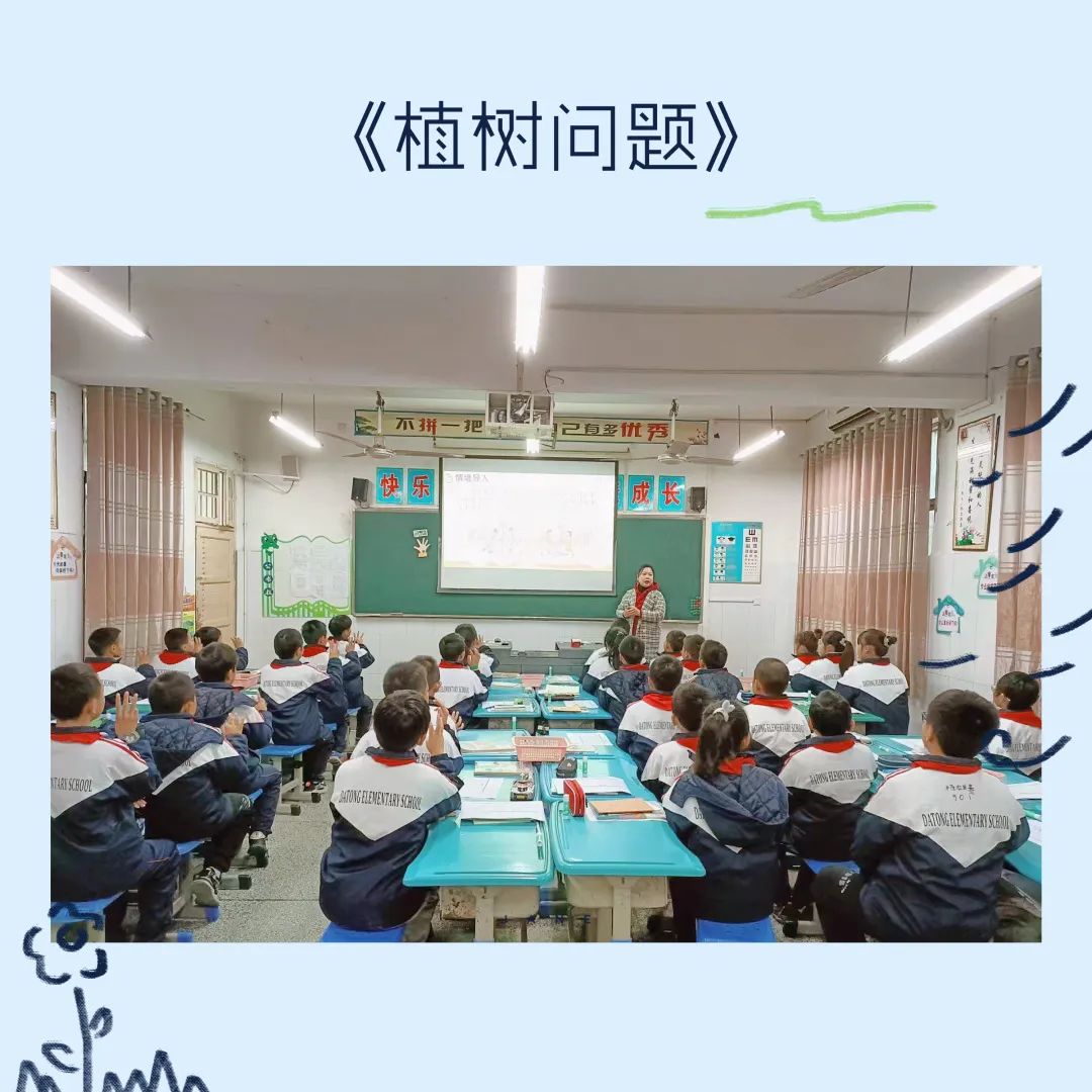 周愛麗老師執(zhí)教的課題是《兩端都植樹的實際問題》。