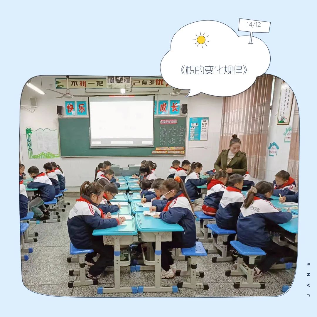 在學(xué)習(xí)過程中謝老師非常重視學(xué)生的自主學(xué)習(xí),善于引導(dǎo)學(xué)生通過觀察、計算、說理、交流等活動,歸納積的變化規(guī)律。教學(xué)過程設(shè)計緊湊,老師講解清晰、簡潔,設(shè)問、追問都處理的恰如其分。學(xué)生思維在一個個追問中得到開啟,一環(huán)扣一環(huán)的層層剖析,讓學(xué)生知其然更知其所以然。